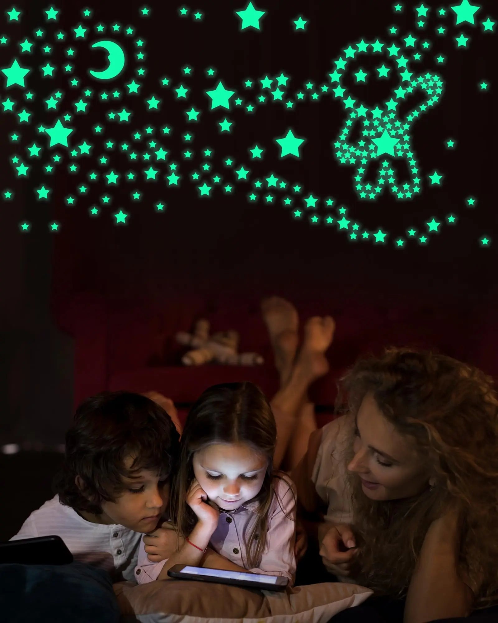 Glow-in-the-dark stars and moon stickers that create a calming night-sky effect in any room.