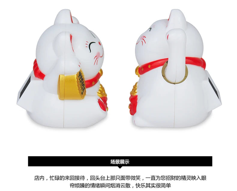 Charming solar-powered fortune cat that waves continuously without batteries.